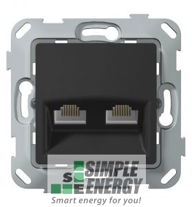 Комп’ютерна розетка подвійна Plank Electrotechnic кольору антрацит, з композитним супортом, має два RJ-45 роз’єма, які підтримують швидкісну передачу сигналу за стандартом CAT-6 у мережах типу Ethernet. Спеціально розроблена форма розетки, де роз’єми розташовані під кутом до стіни, дозволяє компактно розмістити меблі та інші предмети біля розетки. Механізм комп’ютерної розетки пройшов випробування та має сертифікат відповідності.