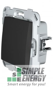 Перемикач прохідний одноклавішний Plank Electrotechnic кольору антрацит, з композитним супортом, розрахований на комутацію електричного навантаження змінного струму до 250 Вольт, 10 Ампер. Комутація відбувається електричним контактом на основі сплаву срібла. Контактна група виконана з надійних сплавів і розрахована на безгвинтовий затиск дроту, що забезпечує швидкість монтування. Завдяки спеціальній конструкції, перемикач застосовується на сходах, кімнатах, та коридорах для управління освітленням з різних місць.