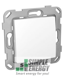 Перемикач прохідний одноклавішний Plank Electrotechnic білого кольору, з композитним супортом, розрахований на комутацію електричного навантаження змінного струму до 250 Вольт, 10 Ампер. Комутація відбувається електричним контактом на основі сплаву срібла. Контактна група виконана з надійних сплавів і розрахована на безгвинтовий затиск дроту, що забезпечує швидкість монтування. Завдяки спеціальній конструкції, перемикач застосовується на сходах, кімнатах, та коридорах для управління освітленням з різних місць.